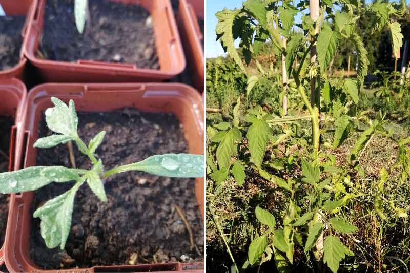 - Vers la mi-mai, après que le risque de gelées soit écarté, les plants de tomates sont repiqués au potager.