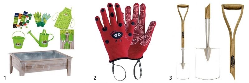 Les enfants ont aussi le droit de jardiner. Et il n'est jamais trop tôt pour les initier aux joies de faire pousser leurs propres légumes. C'est l'occasion parfaite pour leur offrir un kit de jardinage contenant des semences, des petits outils, des gants et un tablier, un arrosoir et... un carré potager. Pour protéger les petites mains, nous avons de jolies paires de gants. D'ailleurs, les gants coccinelles sont déjà adoptés par la fille de Virginie. Et pour les jeunes jardiniers débutants, optez pour une bonne bêche adaptée à leur taille.