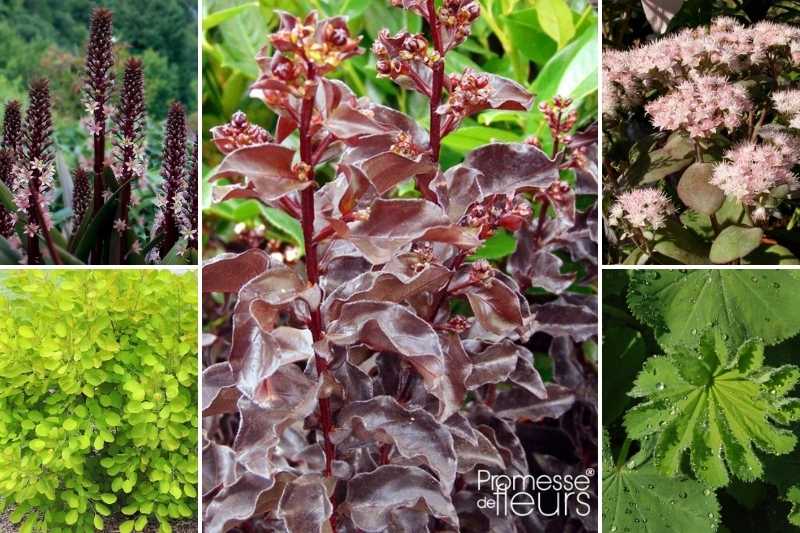 Pour faire ressortir encore plus ce feuillage d’exception, associez-le en massif avec des feuillages vert acidulés : un Catalpa bignonoides 'Aurea' ou un Cotinus coggygria ‘Golden Spirit’, quelques Alchémilles, des Eucomis autmonalis et à des floraisons roses à pourpres qui l’accompagneront toute la fin de l’été : Eucomis comosa 'Sparkling Rosy', Sedums 'Dark Magic', Sedums 'Matrona'...
