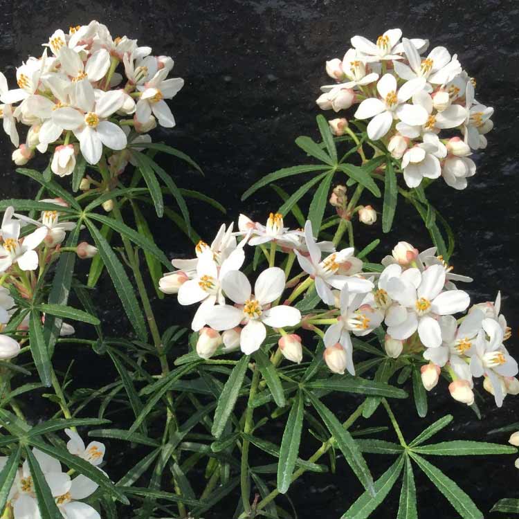 Au jardin ou en pot sur la terrasse, le Choisya Scented Gem est la perle rare parmi les orangers du Mexique ! Remontant, il fleurit deux fois, au printemps et en fin d’été. Ses fleurs blanches au parfum de néroli éclosent de boutons roses, pour un charmant effet bicolore. Elles sont nichées dans un feuillage découpé en lanières. Persistant, il garde son beau feuillage toute l’année. Sa floraison pastel s’associera bien à celle d’un rosier rose Bordure Nacrée, d’un abélia nain Pink Pong ou d’un Caryopteris Sterling Silver en fin d’été. Placez-le près de la maison, pour profiter au maximum de son parfum !