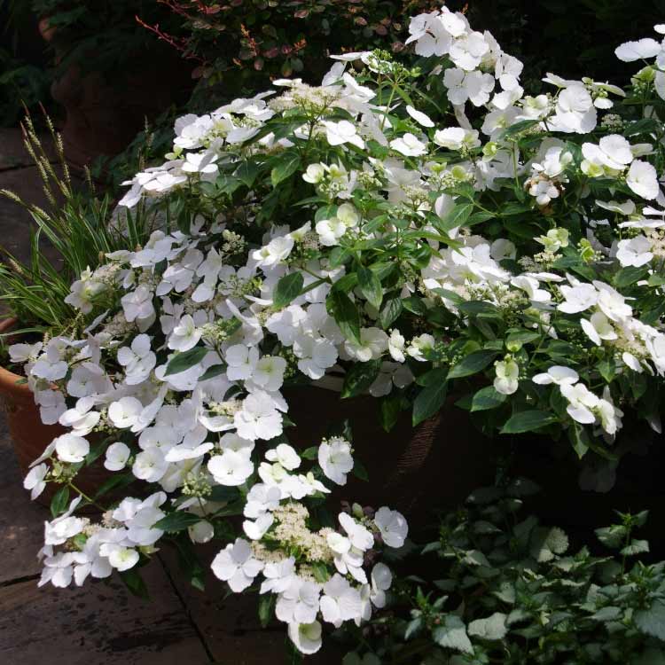 Dans la catégorie des plantes révolutionnaires, comment oublier l’Hydrangea ‘Runaway Bride’, surnommé l’hortensia-guirlande ? Élue plante de l'année lors du RHS Chelsea Flower Show 2018, cette variété fleurit non seulement à l'extrémité de ses rameaux, mais aussi tout le long de ses tiges. Ses fleurs blanches, légères comme de la dentelle, forment comme des guirlandes, de l'été à l'automne. Pour l’accompagner, choisissez des plantes aussi florifères que lui, comme les fuchsias magellanica ou regia Reitzii, des impatiens annuelles, ou bien la beauté des lis Stargazer ou du Lis botanique Lilium speciosum Uchida.
