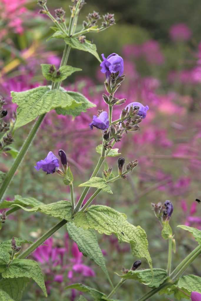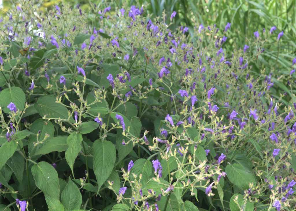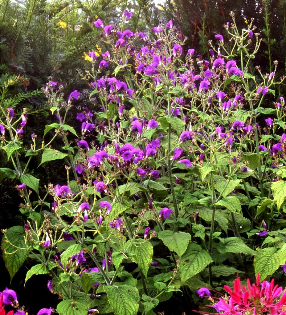 Arrive enfin en piste, la belle, la majestueuse Strobilanthes penstemonoides (rankanensis) épanouissant de grandes fleurs d'un joli violet intense dès début septembre. Cette espèce forme un beau buisson d'un mètre d'envergure se couvrant de fleurs de façon ininterrompue jusqu'aux portes de l'hiver.