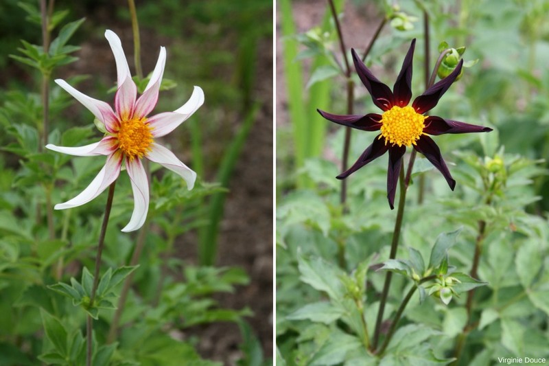 Je suis sous le charme des dahlias Honka avec leurs pétales fins en étoile.