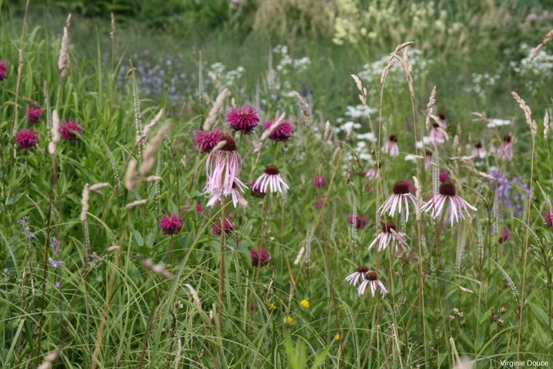 Parmi elles, on retrouve des vivaces colorées tels les monardes, les stachys, les héléniums, les échinacées, les echinops et bien d’autres merveilles estivales.