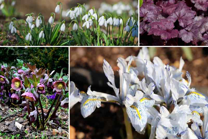 Plantez-le en groupe au pied d’arbustes à floraison hivernale comme les hamamélis ou les sarcococca, ou associez-le à des bulbes précoces comme les crocus ou les perce-neige. Dans une rocaille, il se marie à merveille avec des hellébores ou des primevères, créant un tableau où le blanc et le bleu se répondent en douceur. Pour un effet plus contrasté, osez le jouer avec des feuillages pourpres comme ceux des heuchères ou des ajugas.