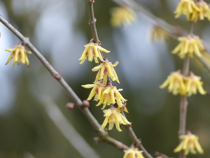 Les fleurs du Chimonanthus apparaissent à même les branches nues, au cœur de l'hiver.