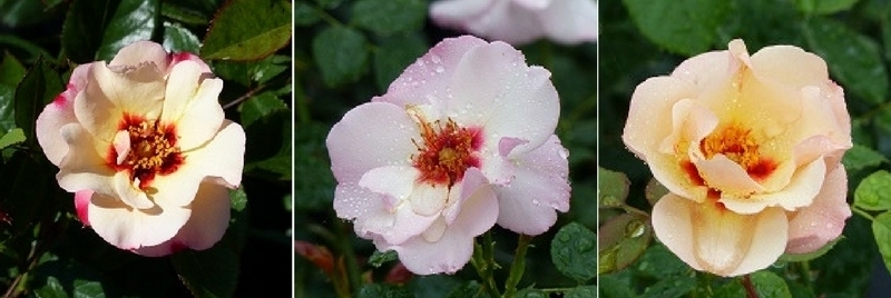 D'un papier à l'autre, d'un écran à l'autre, d'un œil à un autre, rien n'est figé, tout change sans cesse... et que dire des fleurs elles-mêmes ? C'est parfois tout bonnement une "mission impossible" qu'elles nous lancent, j'en veux pour preuve le magnifique nouveau rosier 'Alissar, Princess of Phoenicia' : regardez ces photos, toutes prises sur les mêmes plantes à la pépinière à Houplines, sur un intervalle de 15 jours où il a fait très chaud, puis où les températures sont revenues à la normale.