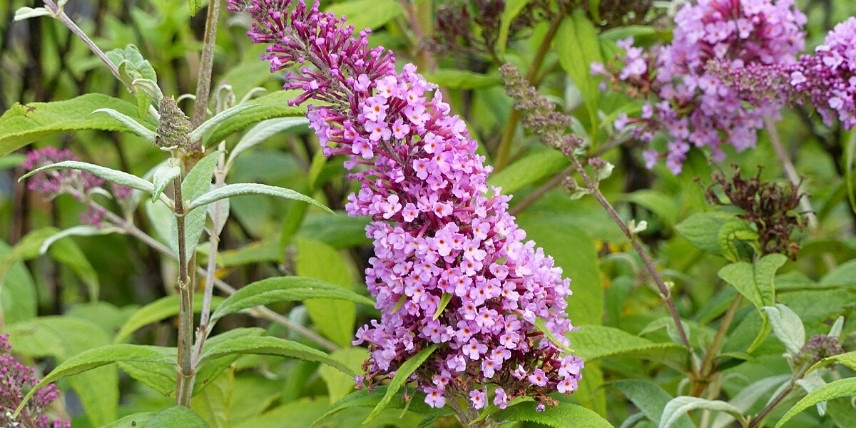 Les Buddleias sont parfaits dans une haie fleurie, par exemple avec des Spirées japonaises, Cotinus et Céanothes. Avec leur style sauvage et naturel, ils constitueront un superbe arrière-plan de massif champêtre. Associez-le à des Achillées, Echinacées, Knauties, Sauges, Népétas, Echinops, Stipa et Miscanthus.