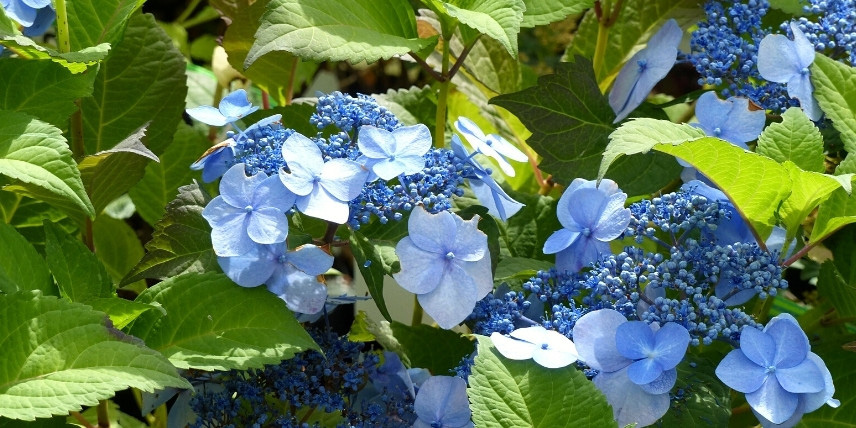 Les Hortensias offrent une floraison impressionnante qui dure tout l’été, habituellement de juin jusqu’en septembre. Ils portent alors de grandes inflorescences plates ou sphériques, en général bleues ou roses, parfois blanches, mauves, rouges… La couleur de leurs fleurs varie aussi en fonction du pH du sol : plus il est acide, plus elles sont bleues, tandis que plus le sol est calcaire, plus les fleurs prennent une teinte rose. Les inflorescences sont généralement plates ou sphériques. Nous vous conseillons en particulier les Hortensias la série ‘Endless Summer’, justement sélectionnés pour leur très longue floraison ! Vous pouvez par exemple choisir l’Hortensia ‘Endless Summer Bloomstar’, à fleurs roses, ‘Endless Summer The Bride’ à fleurs blanches, ou ‘Endless Summer Twist and Shout’.