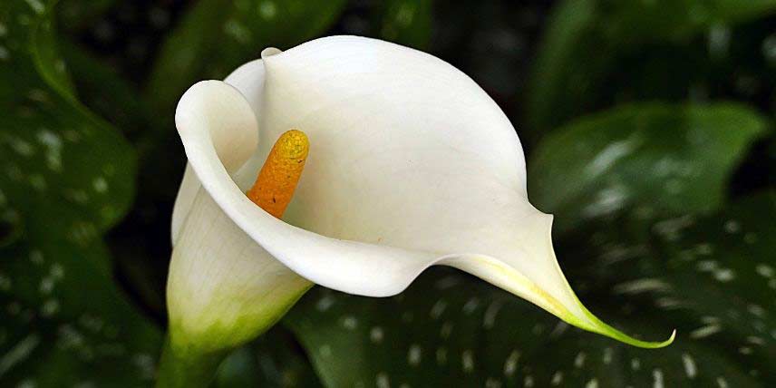 Les Arums offrent une floraison élégante, en forme de cornet. Leur floraison a lieu entre mai et août. Ils portent aussi un beau feuillage, permettant de recréer une ambiance luxuriante. Le plus connu est le Zantedeschia aethiopica, aux fleurs blanches ayant un aspect très épuré mais original. Un épi central allongé (spathe), de couleur jaune ou orange, est enveloppée dans une bractée évasée (spadice), blanche, qui prend la forme d’un cornet. Il existe aussi des Arums à floraison colorée, jaune, orange, rouge, rose, violet pourpré… Les feuilles sont grandes et sagittées (en forme de flèche), de couleur vert foncé. Les Arums apprécient les sols frais, voire humides.