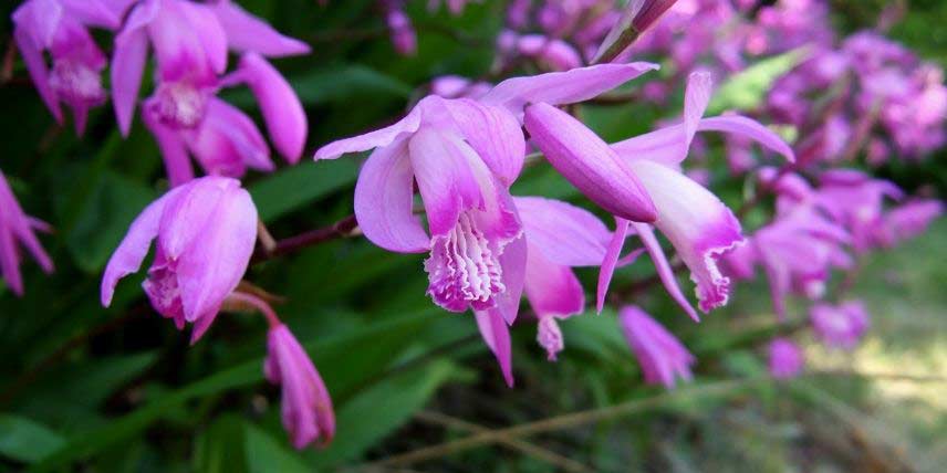 Les Bletillas sont des orchidées de jardin qui fleurissent en début d’été, généralement en juin-juillet. On les appelle aussi « Orchidée jacinthe ». La fleur est originale, avec une symétrie bilatérale et un raffinement qui la rend assez caractéristique d’une fleur d’orchidée. L’espèce-type Bletilla striata offre une floraison rose – mauve, mais on trouve aussi des variétés à fleurs blanches. Le feuillage est vert, élancé, et plissé dans le sens de la longueur. La plante forme un court rhizome sur lequel apparaissent des pseudo-bulbes. Les Bletillas ont l’avantage d’être rustiques et assez faciles à cultiver. Ils nécessitent peu d’entretien.