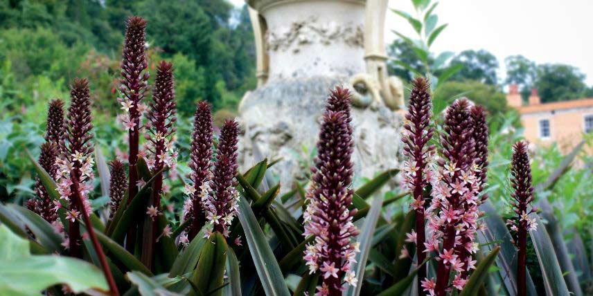 Les Eucomis, aussi appelés « Fleur Ananas », sont de superbes plantes dont la floraison a un aspect très exotique et original. Leurs teintes sont surprenantes également. Les inflorescences peuvent être par exemple verdâtres, pourprées, ou jaune pâle… Ce sont des grappes dressées, constituées d’un grand nombre de petites fleurs en forme d’étoile. Les feuilles des Eucomis sont parfois nuancées de pourpre ou bordeaux. Les Eucomis ont besoin que le sol reste relativement frais en été. Ils se plaisent en plein soleil, dans un sol riche et drainant.