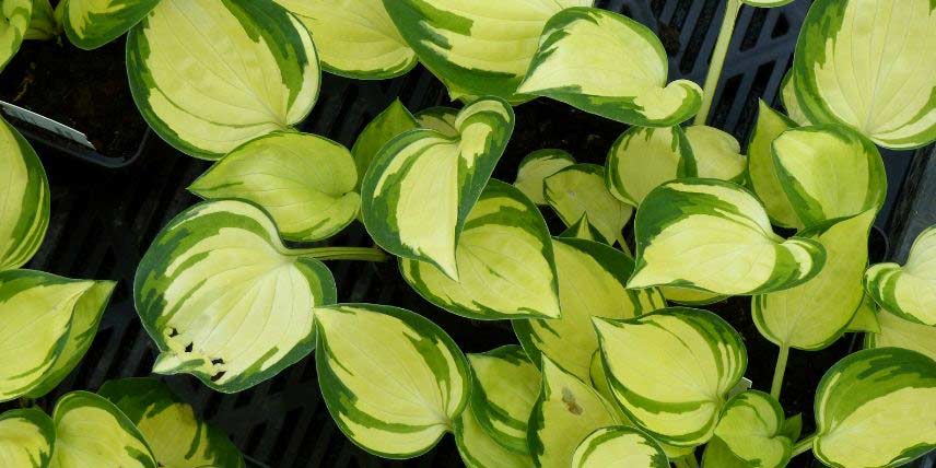 Les hostas sont de très belles plantes d’ombre, à l’aspect luxuriant, et qui forment des touffes intéressantes pour leur feuillage décoratif, prenant de superbes teintes. Leurs feuilles sont amples et larges ; elles peuvent être vertes, bleutées, dorées, panachées de blanc… On apprécie également leur floraison, sous forme de clochettes de couleur blanc ou mauve clair. Les hostas se plaisent dans les terrains frais, voire humides, profonds, et assez riches en matière organique. Pour une rocaille, nous vous conseillons de choisir de préférence ceux de petite taille, comme les variétés ‘Blue Mouse Ears’, ‘Diamond Tiara’, ‘Stiletto’, ou ‘Warwick Delight’… Les variétés qui possèdent un feuillage panaché de blanc ou de crème sont idéales pour apporter de la luminosité !