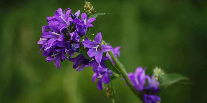 Les campanules sont de ravissantes plantes qui offrent des floraisons en clochettes bleues, mauves ou blanches, constituées de fleurs à cinq lobes. Elles ont un aspect léger et naturel, délicat. En terrain calcaire, nous vous conseillons notamment la culture de la campanule à bouquet, Campanula glomerata. Elle offre des fleurs rassemblées en glomérules, portées en haut de tiges dressées qui atteignent jusqu’à 50-60 cm de hauteur. Elle s’intégrera facilement dans un jardin de style naturaliste et sauvage, champêtre.