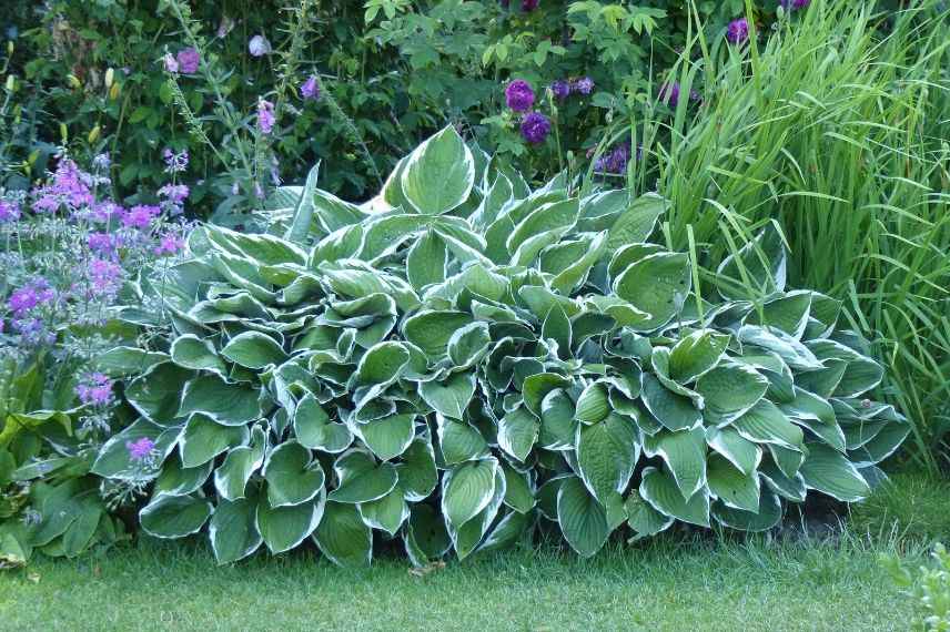 L’Hosta ou Funkia est une vivace très appréciée pour ses larges feuilles ovales ou cordées, prenant de superbes couleurs dont les teintes varient en fonction des nombreuses variétés : il peut être vert, vert-bleu, parfois doré, souvent panaché de blanc ou de crème… La floraison parfumée en grappes de clochettes n’est pas en reste et persiste tout l’été. Tantôt petite, tantôt énorme, l’Hosta s’étend lentement pour former de larges touffes, poussant ses voisines, ce qui en fait un couvre-sol parfait pour l’ombre. Cette vivace sans soucis aime l’ombre et l’humidité et supporte parfaitement bien les terres lourdes et argileuses. Les variétés panachées ou à feuillage doré sont idéales pour apporter de la luminosité à l’ombre des arbres. L’Hosta s’étend pour former de larges touffes, poussant ses voisines, ce qui en fait un couvre-sol parfait pour l’ombre. À noter qu’il peut très bien être planté en pot.