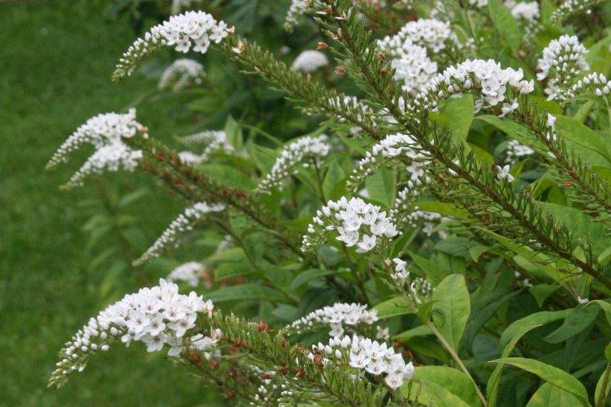 La Lysimachia clethroides est appelée Lysimache de Chine ou encore Lysimache col-de-cygne en regard de ses étonnantes inflorescences blanches en forme d’épis recourbés apparaissant entre juillet et août. En groupe, ces inflorescences régulièrement espacées sont toutes dirigées dans le même sens, créant ainsi un effet particulier. Le feuillage lancéolé est d’un beau vert clair jusqu’en fin d’été, puis se teinte de rouge et d’orangé en automne, avant de disparaître complètement en hiver. C’est une vivace très rustique dont les rhizomes traçants s’étendent rapidement dans les terres fraîches à humides, au point que la plante peut doubler d’envergure en deux ans seulement. Cette vivace doit être plantée au soleil ou à la mi-ombre dans une terre lourde, riche et très humide.
