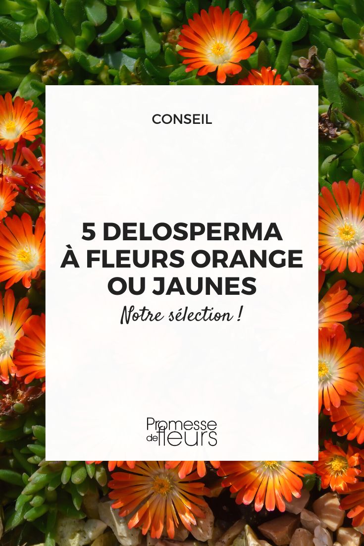 Le Delosperma est une vivace rampante couvre-sol qui prospère en sol sec, drainé et pauvre. Son feuillage charnu et succulent, dense et bas, tapisse de belles surfaces. Il se couvre de nombreuses petites fleurs comme des marguerites à fines ligules, pendant de nombreuses semaines, au printemps ou en été. Elles s’ouvrent uniquement au soleil et attirent les butineurs. Ces fleurs se déclinent en rose, en violet, en blanc et en jaune et orange, coloris qui nous intéressent ici. Le Delosperma est peu rustique, plus ou moins selon les espèces, jusqu’à -8° C généralement, excepté le Delosperma deschampsii et Delosperma lineare, tous deux rustiques jusqu’à -15° C.