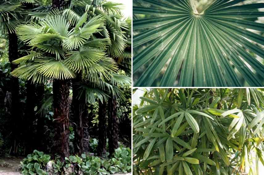 Trachycarpus fortunei, feuille de Sabal, Rhapsis excelsa