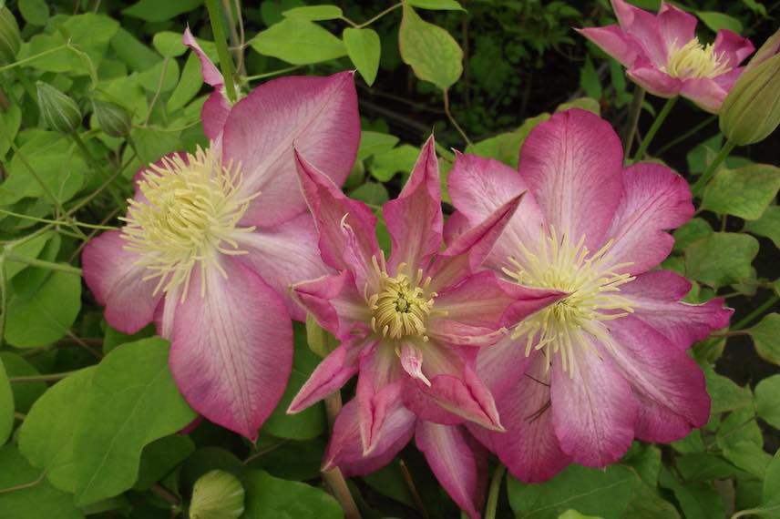 Certaines variétés de clématites ne sont pas adaptées à une plantation en pot, parce qu’elles sont trop imposantes. Ainsi, en termes de conseils pour planter des clématites en pot, nous insistons toujours sur l’importance de choisir des variétés plus compactes, qui ne vont pas au-delà de 2 mètres de hauteur.