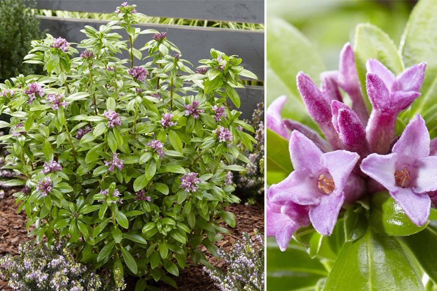 Malgré sa toxicité, ne vous privez pas de cet arbuste aux nombreux atouts ! Blanche ou rose, sa floraison étoilée est très parfumée. Proche de la maison, le Daphné embaume toute la terrasse. Certaines variétés fleurissent dès février, comme le Daphne odora ‘Aureomarginata’, alors que d’autres attendent la fin du printemps à l’image du Daphne burkwoodii ‘Somerset’. La cultivar Daphne x transatlantica ‘Eternal Fragrance’ offre quant à lui deux floraisons ! De mai à juillet, puis de septembre à octobre. Cet arbuste est idéal pour un petit jardin ou une terrasse grâce à sa petite taille et son port compact. Il est plutôt facile de culture, appréciant un sol léger et acide. En revanche, il redoute l’humidité stagnante. Il convient de le planter en sol drainé ou en pot. N’aimant pas le soleil brûlant, installez-le en situation ombragée ou semi-ombragée. Assez rustiques, les daphnés tolèrent jusqu’à -15°C selon les variétés. Un peu de protection comme du paillage et un voile d’hivernage, ne sera pas de refus pour ce bel arbuste !