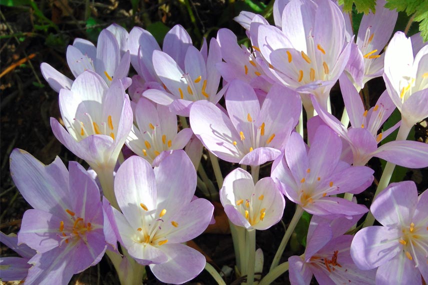 Dans le jardin, ses fleurs apparaissent subrepticement de septembre à novembre. Avant les feuilles, elles forment des petites touffes colorées. Blanches, à l’instar du Colchique ‘Autumnale Alboplenum’ qui offre de fleurs doubles, blanches et étoilées. Roses, comme le Colchique autumnale ‘Major’, dotée de petites fleurs précoces. Mais aussi violettes, comme le Colchique hybride ‘The Giant’, atteignant 20 cm de haut. Plantez le colchique en plein soleil, éventuellement à la mi-ombre, mais à l’abri du vent. Vous pouvez les disséminer dans un massif, puis, les laisser se multiplier tous seuls pendant plusieurs années. Ils formeront alors de petites touffes colorées çà et là. En compagnie de dahlias et d’échinacées, ils formeront une belle scène automnale.