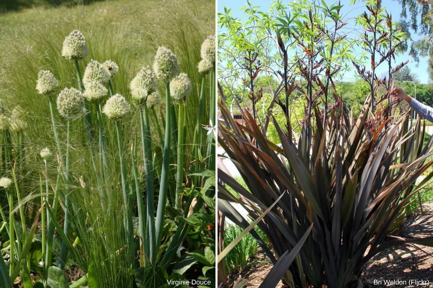 Enfin, n’hésitez pas à utiliser des plantes opulentes et très décoratives comme le Phormium tenax que l’on appelle plus communément le lin de Nouvelle-Zélande.