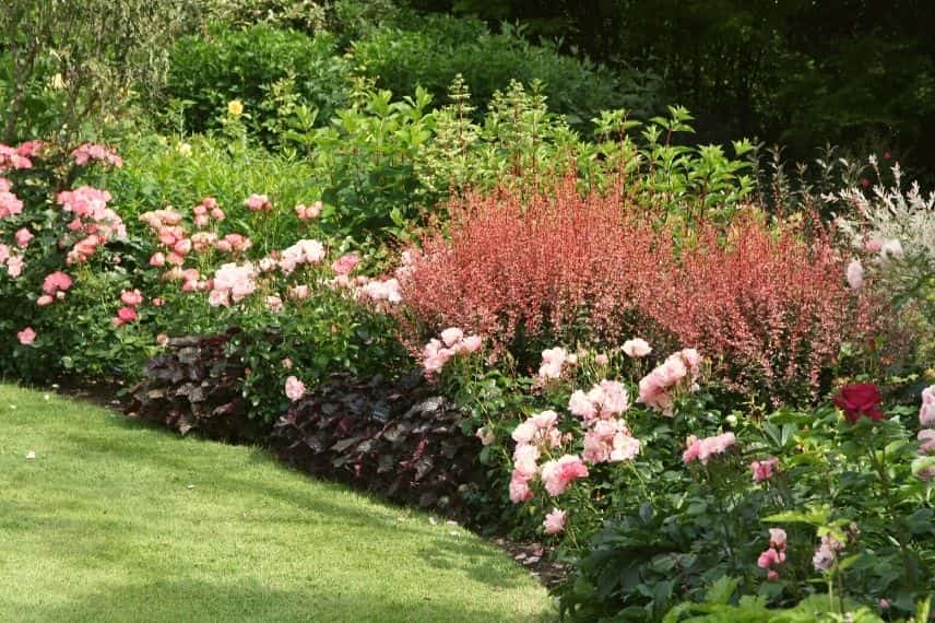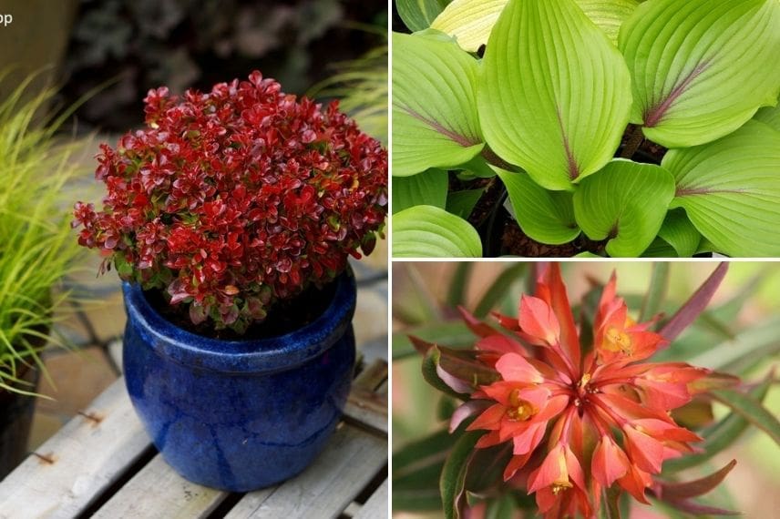 Avec un feuillage pourpre, rose, vert ou doré, les Berberis apporteront une sublime touche de couleur dans un massif d’arbuste. On pourra placer de grand sujet en fond de massif, comme le Berberis thunbergii ‘Red Rocket’, ou des variétés moins hautes sur le devant comme le Berberis Thunbergii ‘Bagatelle’ avec ses petites feuilles pourpre.