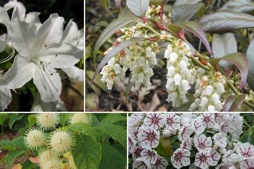 Avec son port très dense, le Leucothoe est parfait pour constituer une petite haie libre, à l’ombre ou à la mi-ombre. De croissance assez lente, choisissez parmi les plus hautes variétés, comme le Leucothoe fontanesiana ‘Scarletta’ ou le cultivar ‘Whitewater’ pour son joli feuillage panaché. On pourra le planter en compagnie d’arbustes au feuillage persistant, comme un Sarcococca qui commencera la saison florale dès janvier, suivi par le Daphné et un Pieris japonica ‘Flaming Silver’. Pour une profusion de fleurs, ajoutez un laurier des montagnes (Kalmia), des Rhododendrons et Azalées, sans oublier les Hortensias. On pourra aussi planter une Viorne de David pour son feuillage vert foncé et des Skimmias pour leurs petits fruits décoratifs. Installez quelques Camérisiers qui offriront leurs fameuses ‘baies de mai’ pour nourrir les oiseaux ou les jardiniers gourmands. Un Cephalanthus occidentalis ‘Sugar Shack’ apportera une touche d’originalité avec ses fleurs en forme de pompons. Pour un joli contraste mêlant le vert et le pourpre, ajoutez un Physocarpus opulifolius ‘Lady in Red’.