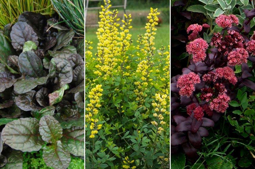 Les variétés de Baptisia à fleurs jaunes sont idéales pour amener de la luminosité aux côtés de plantes au feuillage plus sombre ou plus terne. Optez par exemple pour le baptisia ‘Carolina Moonlight’ ou ‘Lemon Meringue’. Vous pouvez l’associer à des Phormiums, Ajuga reptans, Bergenia, Physocarpus, ou à du Sedum pourpre (‘Purple Emperor’, par exemple), pour créer un beau contraste qui fera ressortir ses fleurs jaunes ! Il apportera immédiatement de la vitalité et du dynamisme dans votre massif. Vous pouvez aussi profiter du Baptisia pour composer un mixed-border très coloré, par exemple en l’associant à des Coréopsis, Achillées, Penstemon, Benoîtes, Hémérocalles… N’hésitez pas à choisir un Baptisia aux fleurs bicolores, comme la variété ‘Cherries Jubilee’. Vous obtiendrez un massif d’été très vivant et lumineux !