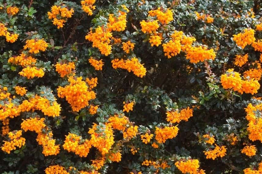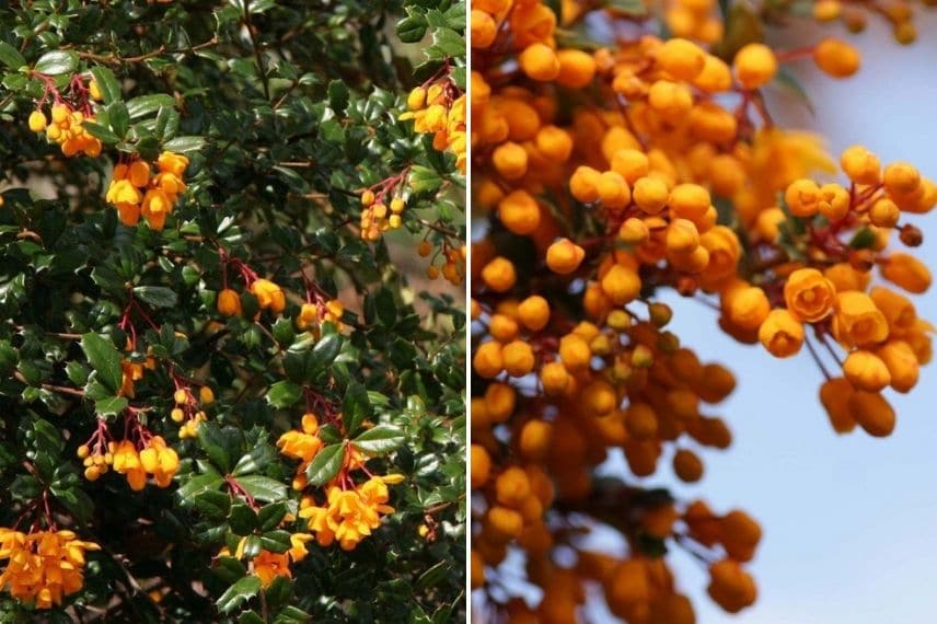 Le beau feuillage et les fleurs du Berberis darwinii