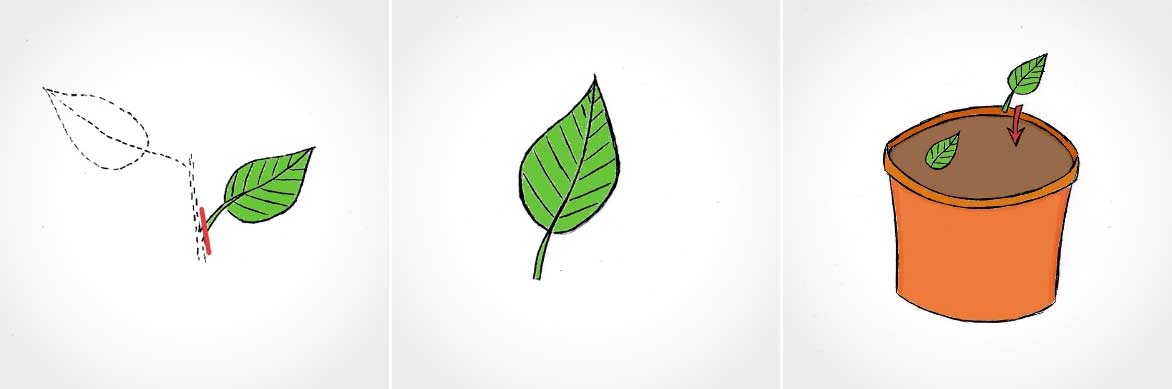 Pour bouturer les feuilles : Prélever une feuille en coupant son pétiole à la base, puis l’implanter dans un substrat bien drainant.
