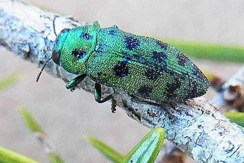 Les buprestes ne sont pas les seuls insectes à s’attaquer aux thuyas : d’autres ravageurs plus occasionnels peuvent devenir problématiques. Comme les mineuses du thuya, des papillons (5 espèces différentes peuvent s’attaquer aux thuyas) dont la chenille se nourrira à l’intérieur des feuilles avant de sortir à l’âge adulte ; les scolytes du thuya font aussi des ravages au même titre que les buprestes ; ou encore, le Capricorne du thuya qui est d’ailleurs un fort bel insecte.
