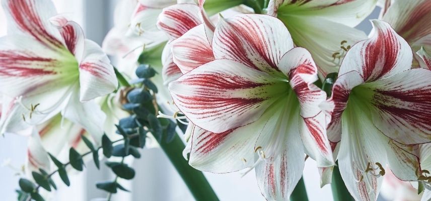 Fleur de fête par excellente, l’Amaryllis ou Hippeastrum est une plante précieuse pour fleurir nos maisons pour Noël mais également jusqu’au printemps ! Si on pense immédiatement à l’Amaryllis rouge pétant à l’instar de l’Amaryllis ‘Benfica’ ou de l’amaryllis ‘Double Dragon’, on ne peut plus raccord avec les tons traditionnels de Noël, cette fleur se décline désormais dans une large palette de coloris et de formes. Certaines variétés siéent bien aux intérieurs moins sophistiqués et aux compositions plus épurées ou simplement naturelles. Pensez aux variétés chics telles que l’Amaryllis ‘Christmas Gift’, l’Amaryllis ‘Double Marilyn’, l’Amaryllis ‘Papilio’. L’Amaryllis est aussi une fleur parfaite pour faire entrer le printemps dans la maison et pour composer des scènes fraîches ou candides, osez l’Amaryllis ‘Emerald’, ‘Picotee’, ‘Evergreen’, l’Amaryllis ‘Estella’, ‘Sweet Nymph’, ‘Gervase’ ou encore Apple Blossom.