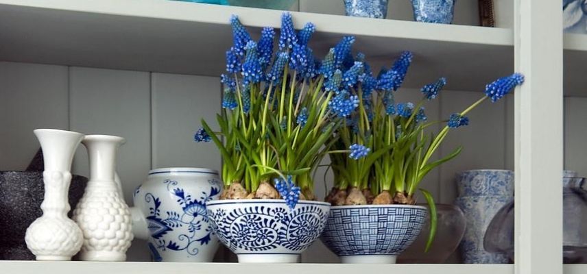 Avec leurs grappes de fleurs bleu intense ou blanches, denses et coniques, les muscaris sont indispensables au jardin car ils offrent l’une des plus belles floraisons dès la sortie de l’hiver : ils signent l’arrivée du printemps ! Comme les autres bulbes de printemps, on peut facilement forcer les bulbes de muscari au froid dès l’automne, pour profiter de leur floraison et de leur parfum musqué dans la maison. Ils se prêtent bien à la culture en intérieur, en pot ou en jardinières printanières mélangés à des narcisses, crocus à des jacinthes précoces ou des tulipes botaniques. Avec leurs coloris allant du bleu ciel chez le Muscari azureum au blanc pur chez le M. aucheri ‘White Magic’ en passant par le rose pâle de ‘Pink Sunrise’, ces petits bulbes ont le chic pour apporter une touche de fraîcheur à votre intérieur.