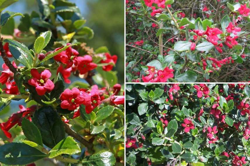 Trois variétés d’escallonias aux fleurs rouges : ‘Coccinea’, C.F. Ball’ et ‘Red Dream’