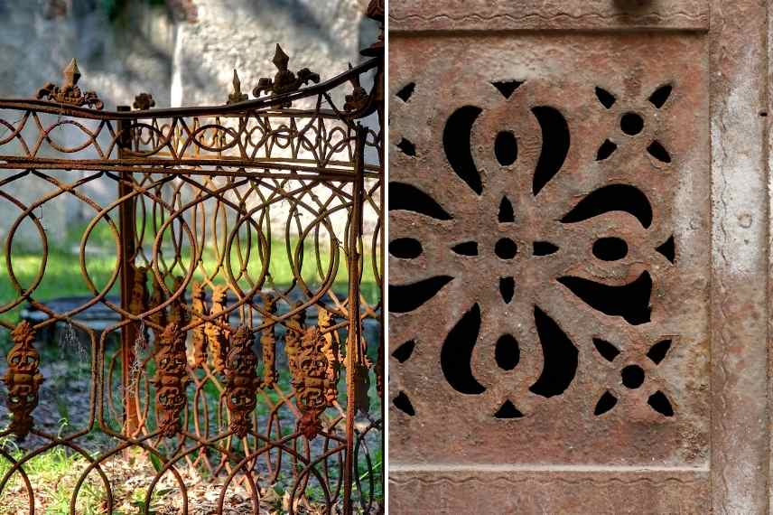 • portillons anciens dans leurs jus (rouillés !), ou structures métalliques suffisamment couvrantes, que vous implanterez devant votre bac : ceci produira un endroit très original dans le jardin que vous pourrez accompagner de petits arbustes