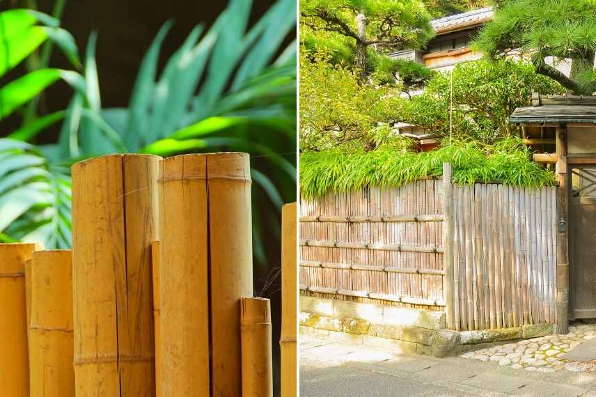 • cannes de bambous que vous planterez dans le sol côte à côte à des hauteurs différentes pour un bel effet, ou en mode portillon sauvage, ou encore associées à de la brande de bruyère ou des canisses en forme de U autour du composteur