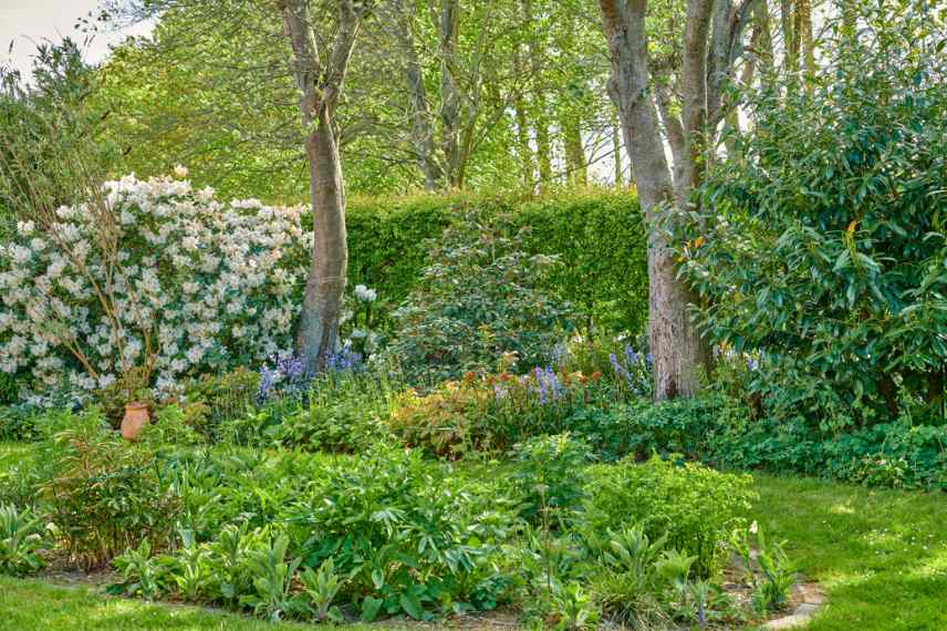 Dans ce jardin, les arbres placés en arrière-plan permettent la mise en valeur des strates basses et des arbustes (photo Gwenaëlle David Authier).