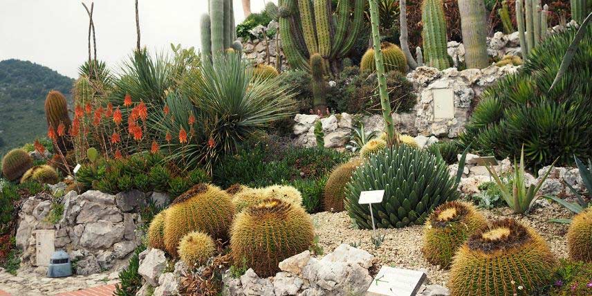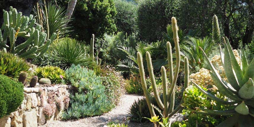 Vous pouvez créer de belles scènes en associant vos cactus à des succulentes et à d’autres plantes adaptées à la sécheresse. (photo prise au Jardin botanique du Val Rameh, à Menton)