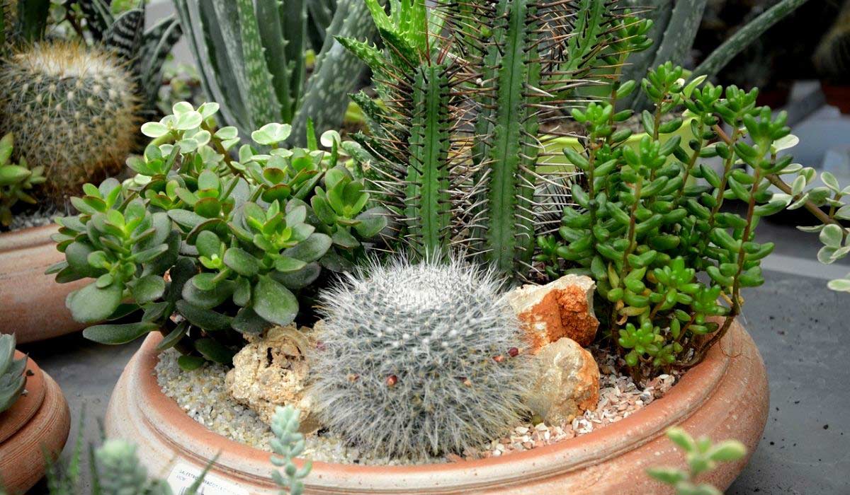 Vous pouvez créer une composition en associant des cactus et plantes grasses, que vous installerez dans un pot assez large.