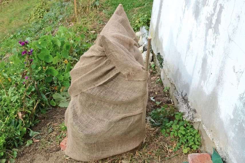 La protection hivernale à l’extérieur peut être aussi réalisée avec de la toile de jute