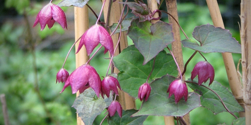 Le Rhodochiton atrosanguineus, surnommé Chapeau chinois, est une belle plante grimpante mexicaine qui donne en été des fleurs en clochettes pourpres violacé et porte un beau feuillage en forme de cœur. Il a l’avantage de pousser vite et peut atteindre au maximum 2 à 3 m de haut. Bien qu’il soit vivace, il est souvent cultivé comme annuelle, car il est gélif (sa souche tolère jusqu’à – 5 °C). Cependant, lorsqu’il est en pot, il est facile de le rentrer sous une véranda ou une serre pour le protéger du froid et ainsi le conserver plusieurs années ! Découvrez dans cette fiche tous nos conseils pour réussir sa culture en pot.