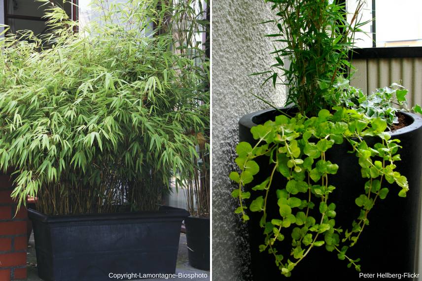 Si la réputation envahissante du bambou vous effraie et que vous disposez d’un petit jardin, le cultiver dans un pot à l’extérieur reste aussi une bonne alternative pour les terrasses ou petits jardins zen, japonais ou contemporains. De petite taille, persistants, rustiques, faiblement traçants (cespiteux) comme les Fargesia et par conséquent faciles à contenir en pots, les bambous nains (1,50 m) ou les petits bambous (3 m) seront parfaits pour composer rapidement des écrans de verdure. En brise-vue, brise-vent ou écran anti-bruit sur votre balcon, votre terrasse et même en petit jardin, ils apporteront une touche exotique toute l’année.