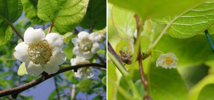 Floraison de l’Actinidia deliciosa (à gauche) et de l’Actinidia arguta (à droite)