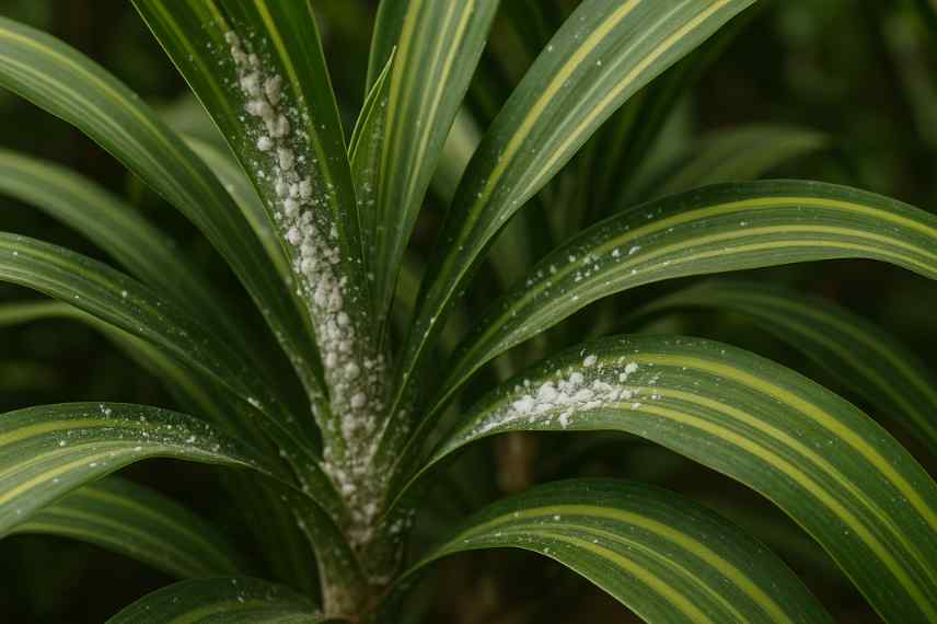 Les cochenilles sont les parasites les plus fréquemment observés sur le Dracaena (image générée par l’IA)