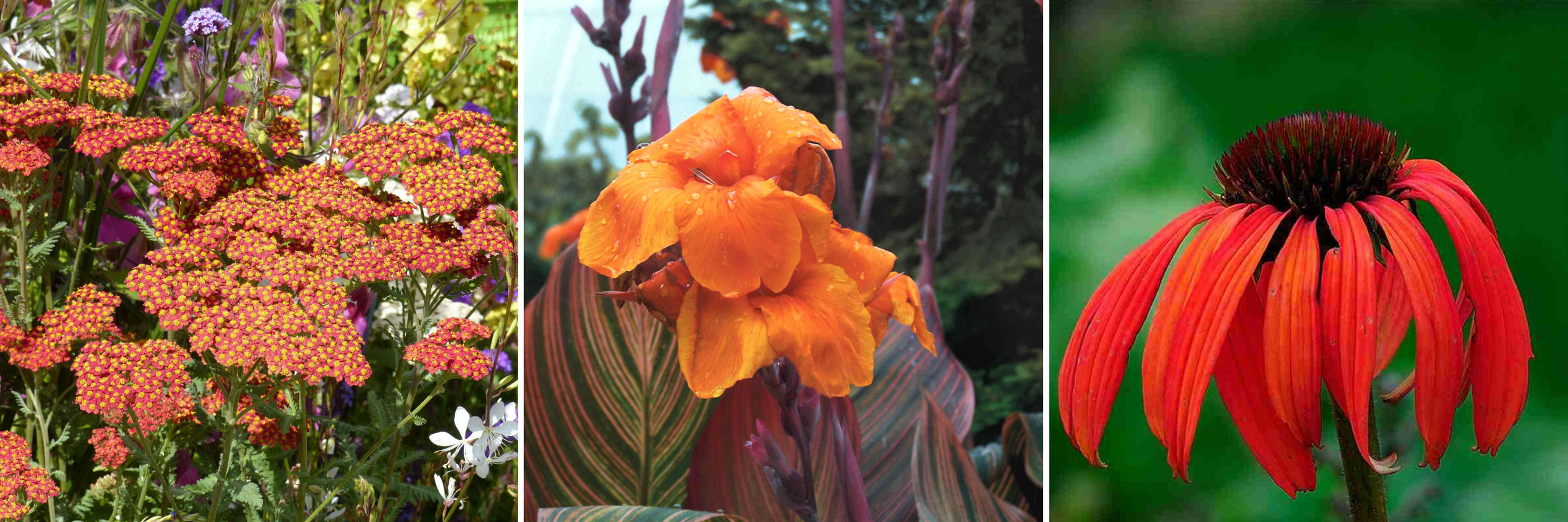 Achilée ‘Walter Funcke’ – Canna ‘Durban’ – Echinacea ‘Tomato Soup’