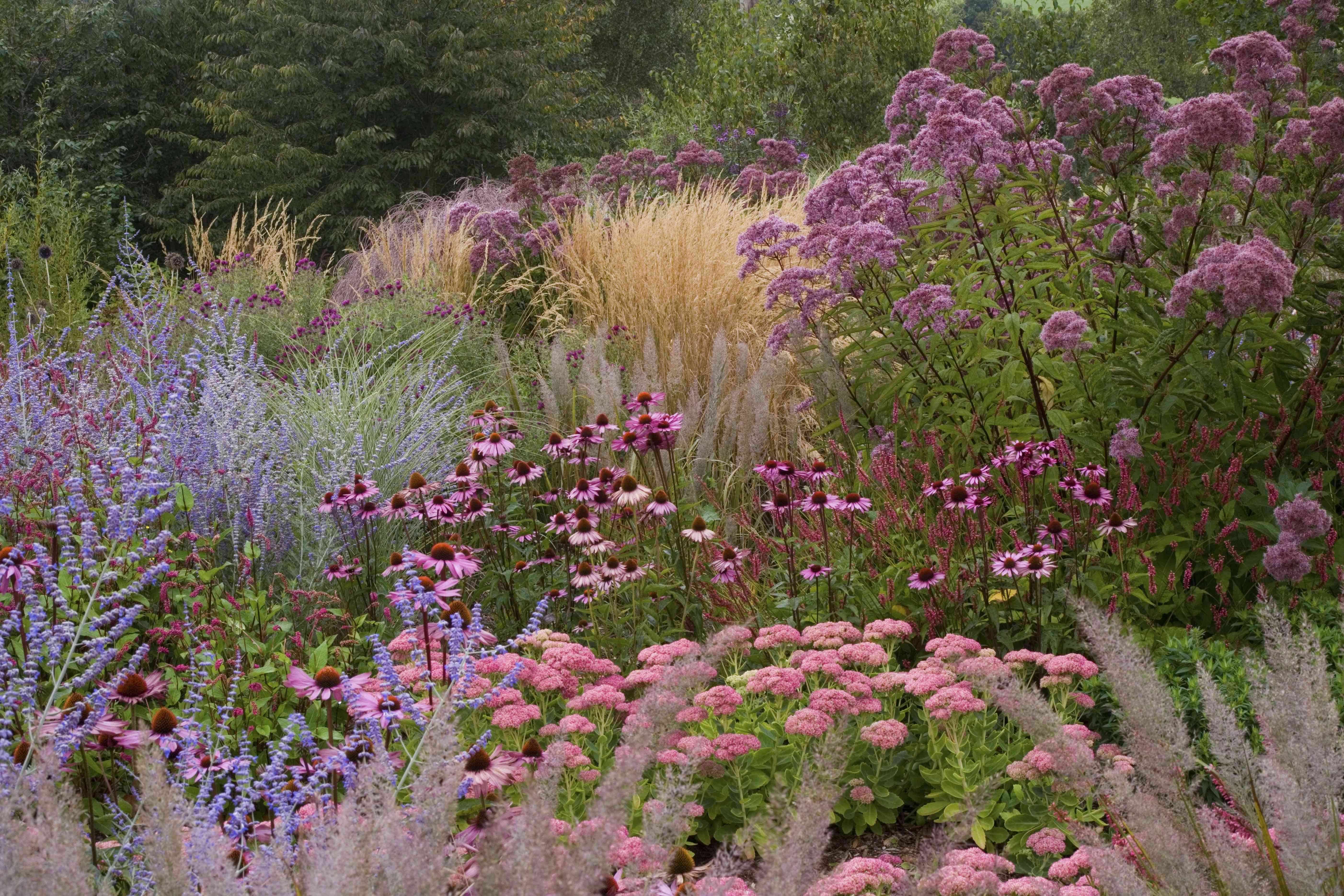 Sedum – Echinacea purpurea – Eupatorium – Perovskia ‘Blue Spire’ – Calamagrostis
