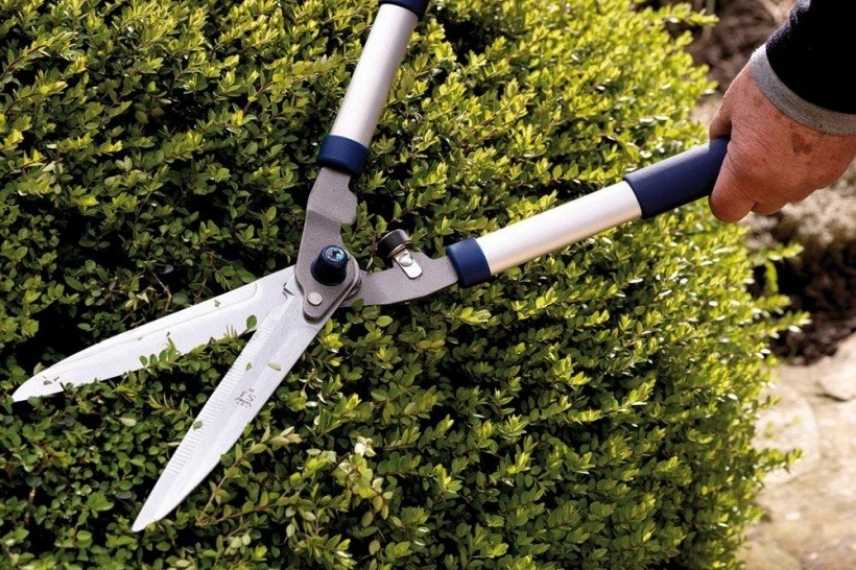 Il s’agit d’une sorte de grande paire de ciseaux que l’on utilise pour couper des rameaux verts, des feuillages épais et des grosses branches. La cisaille ou cisaille à haie constituée de deux lames droites en acier prolongées par des poignées antidérapantes Il en existe à lames ondulées ou crantées, plus efficaces mais moins précises. Si elle s’utilise principalement pour l’entretien des haies, elle peut également servir pour tailler vos rosiers paysagers arbustifs, vos rosiers grimpants et lianes car elle permet de tailler facilement à travers une masse de feuilles et tiges. Certaines cisailles à haie sont montées sur perche pour un travail de taille en hauteur et sans échelle.