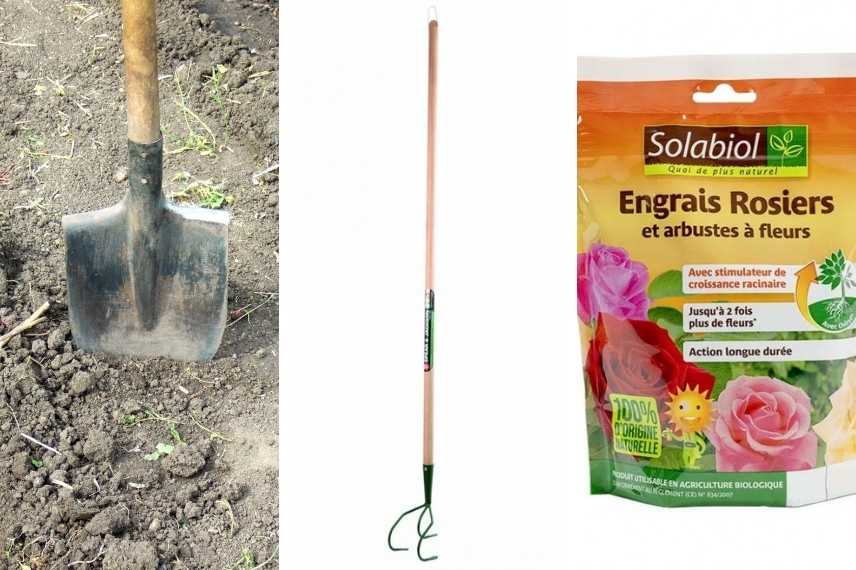 Les rosiers sont des plantes gourmandes qui ont besoin d’apport d’engrais une ou deux fois par an. La pelle, constituée d’une tête plate, plus ou moins ronde et plus ou moins creuse, est un outil fort utile qui permettra d’apporter les amendements organiques nécessaires au bon développement de vos rosiers ou pour remplacer la terre d’un rosier à transplanter.