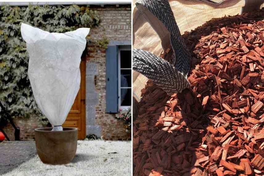 - Emballez les parties aériennes avec un voile d’hivernage sans casser les rameaux.